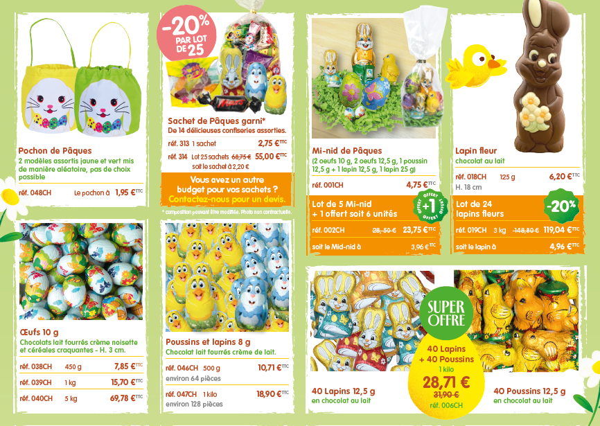 Créateur Gourmands Pâques Commande jusqu’au 6 mars Bon de commande catalogue 1 Catalogue 2 You Might Also Like Pradel France 31 March 2025 Fleurs de Toussaints 18 September 2025 Couque Suisse Ruello 9 May 2025
